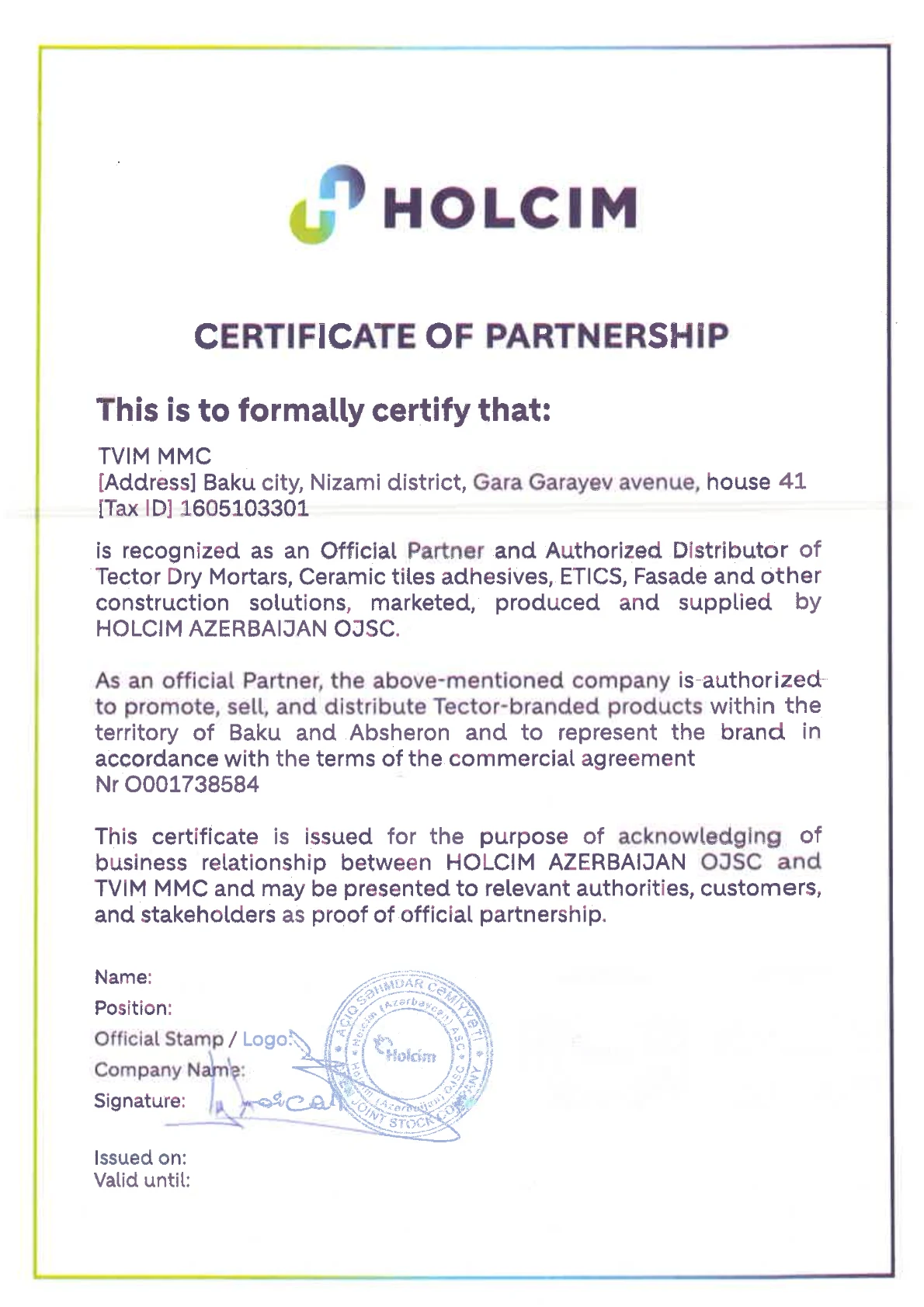 Holcim-in rəsmi distribyutoru kimi, bu məhsulları Azərbaycan bazarında təqdim